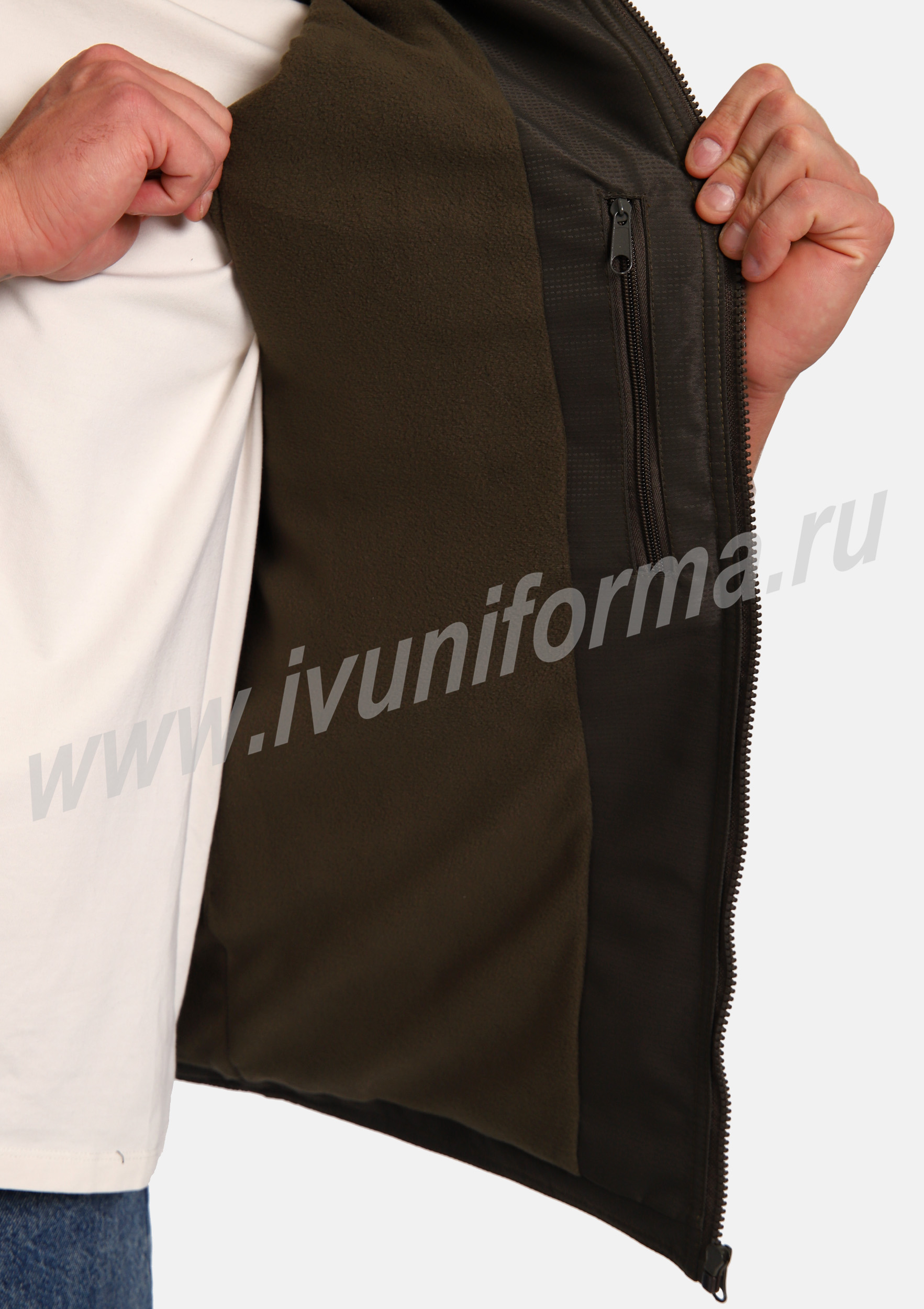 Жилет утепленный на молнии с двумя боковыми карманами в нижней части. Внутренняя часть жилета выполнена из ткани флис. В качестве утеплителя используется синтепон. Жилет является универсальным для использования как мужчинам, так и женщинам.